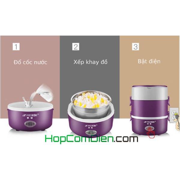 Thiết Bị Điện Gia Dụng > Đồ gia dụng nhà bếp > Nồi cơm điện || Hộp cơm hâm nóng 3 tầng khít canh PESKOE DLS304Còn hàng