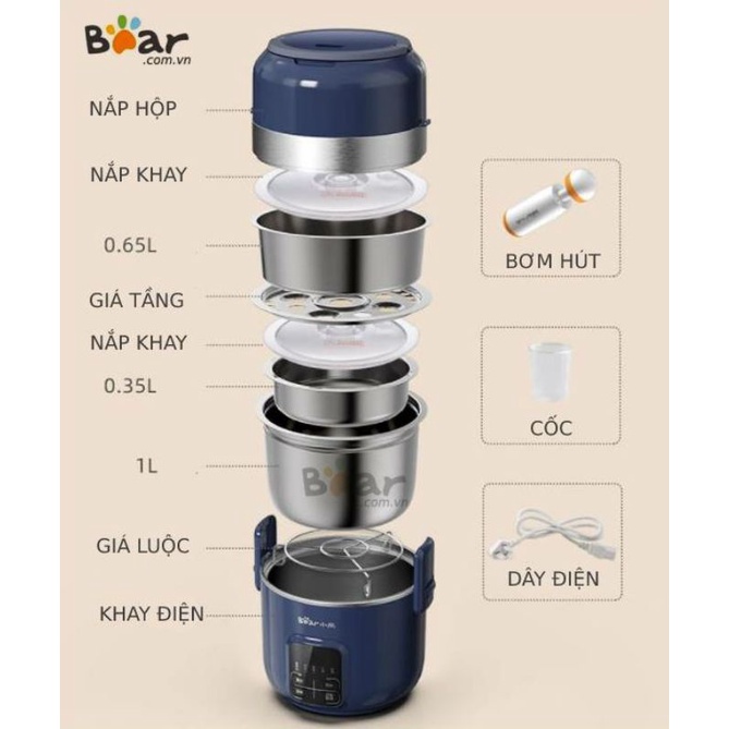 Hộp cơm điện điện tử hút chân không inox 3 tầng với chế độ tự động hẹn giờ và hộp dày với 3 lớp giống như nồi áp suất cao cấp khiến cho đồ ăn được hâm nhanh vượt trội đặc biệt trong lỗi hoàn toàn inox 304 không có chút nhựa hoặc cũng như thành phần khác được cung cấp chính hãng bởi hộp cơm hâm nóng chấm comCông suất: 600W