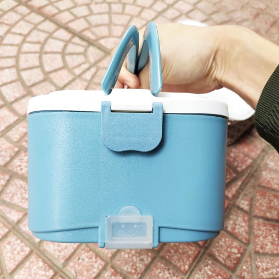 - Có quai xách, có hộp đựng thức ăn bên trong và có khoang trên nắp để đựng muỗng, đũa, dĩa