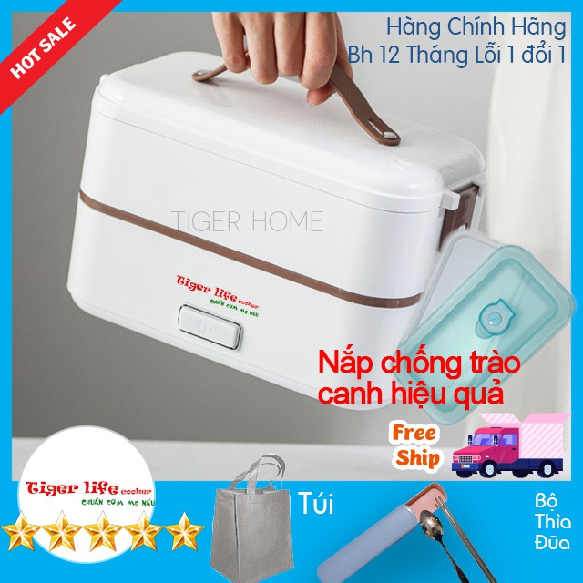 Hộp cơm hâm nóng và nấu, hộp cơm Cắm điện Cao cấp 1, 2, 3 Tầng Tigerlife bh 12 tháng lỗi 1 đổi 1 tặng full đồ