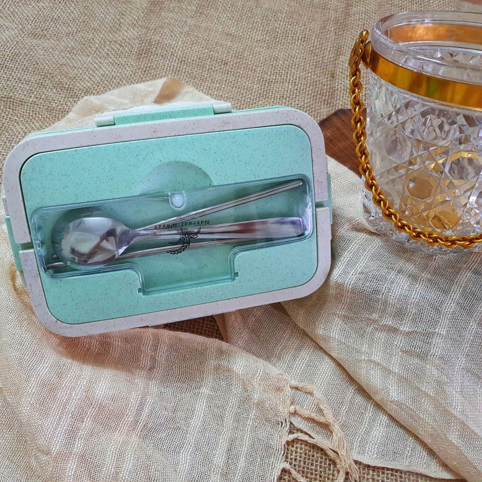 Hộp Cơm Lúa Mạch 3 Ngăn Kèm Đũa Thìa Inox - Giao Màu Ngẫu Nhiên