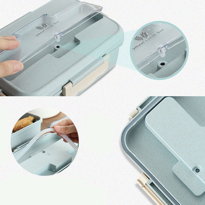 Giới thiệu Hộp cơm lúa mạch 3 ngăn mang đi kèm muỗng đũa inox/lúa mì tiện lợi