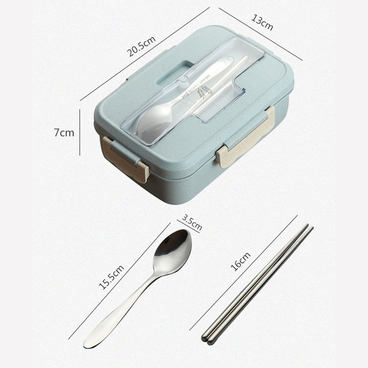 Hộp cơm lúa mạch 3 ngăn mang đi kèm muỗng đũa inox/lúa mì tiện lợi