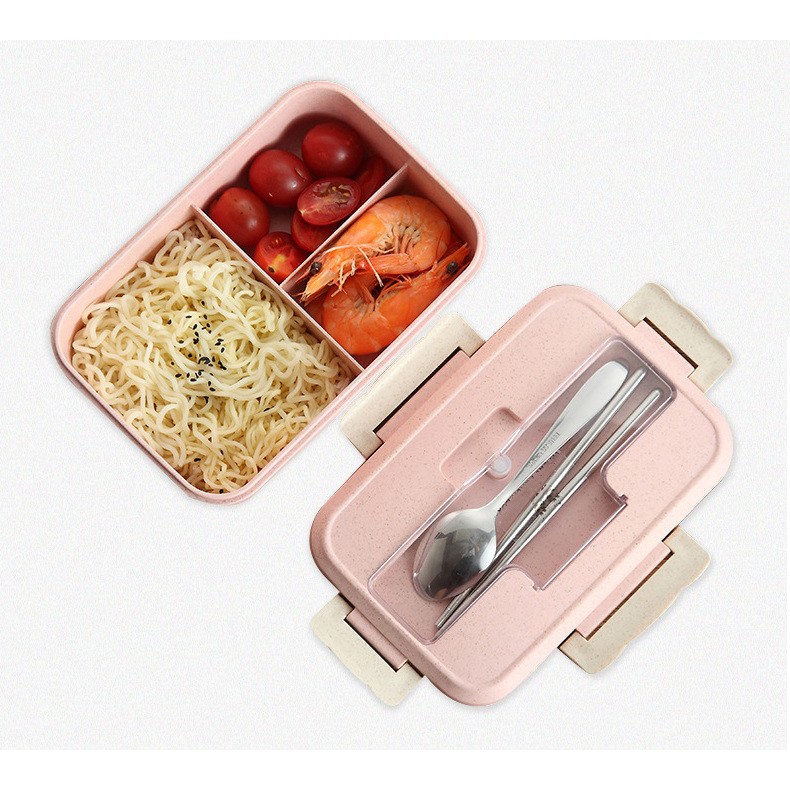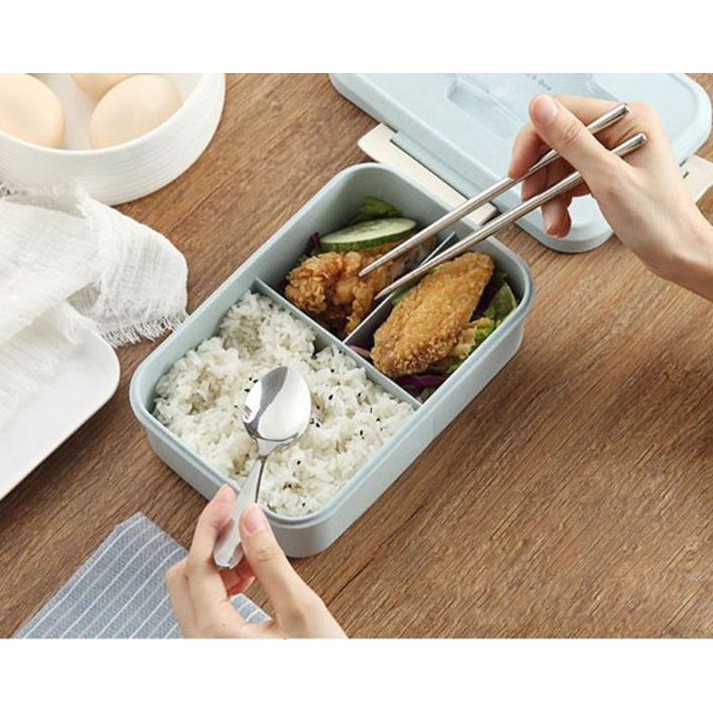 Hộp Cơm Lúa Mạch 3 Ngăn Tặng Kèm Muỗng Đũa Inox