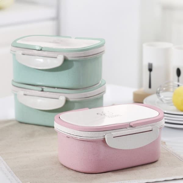 - Hộp cơm chắc chắn với chất liệu làm từ bột cây lúa mạch cao cấp, không độc hại cho sức khỏe.