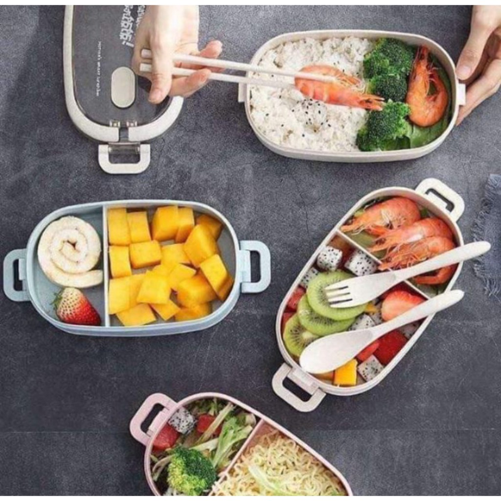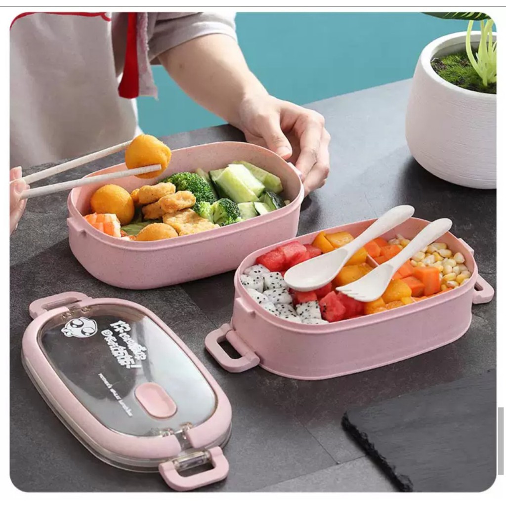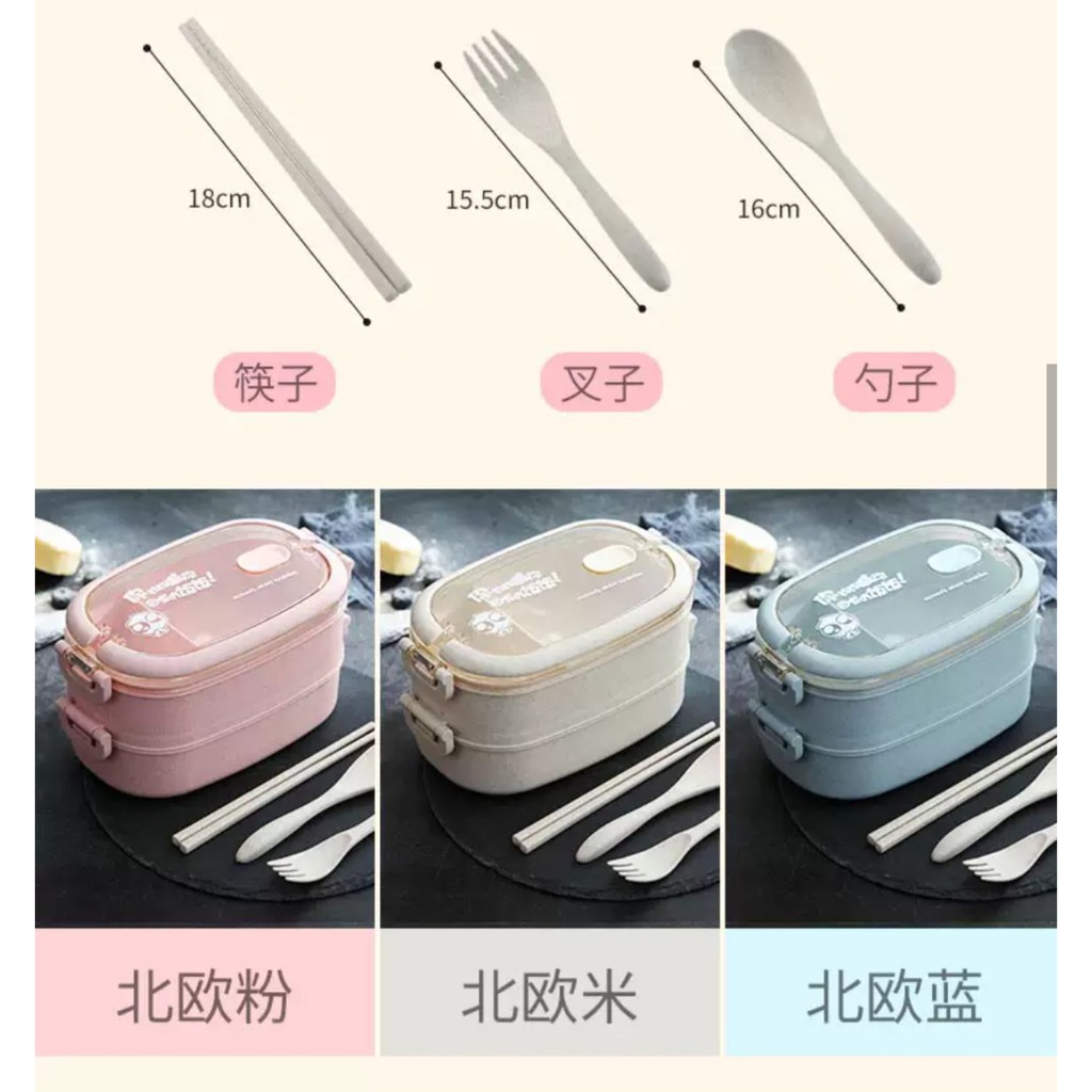HỘP CƠM LÚA MẠCH CHỮ NHẬT HAI TẦNG KÈM THÌA NĨA ĐŨA