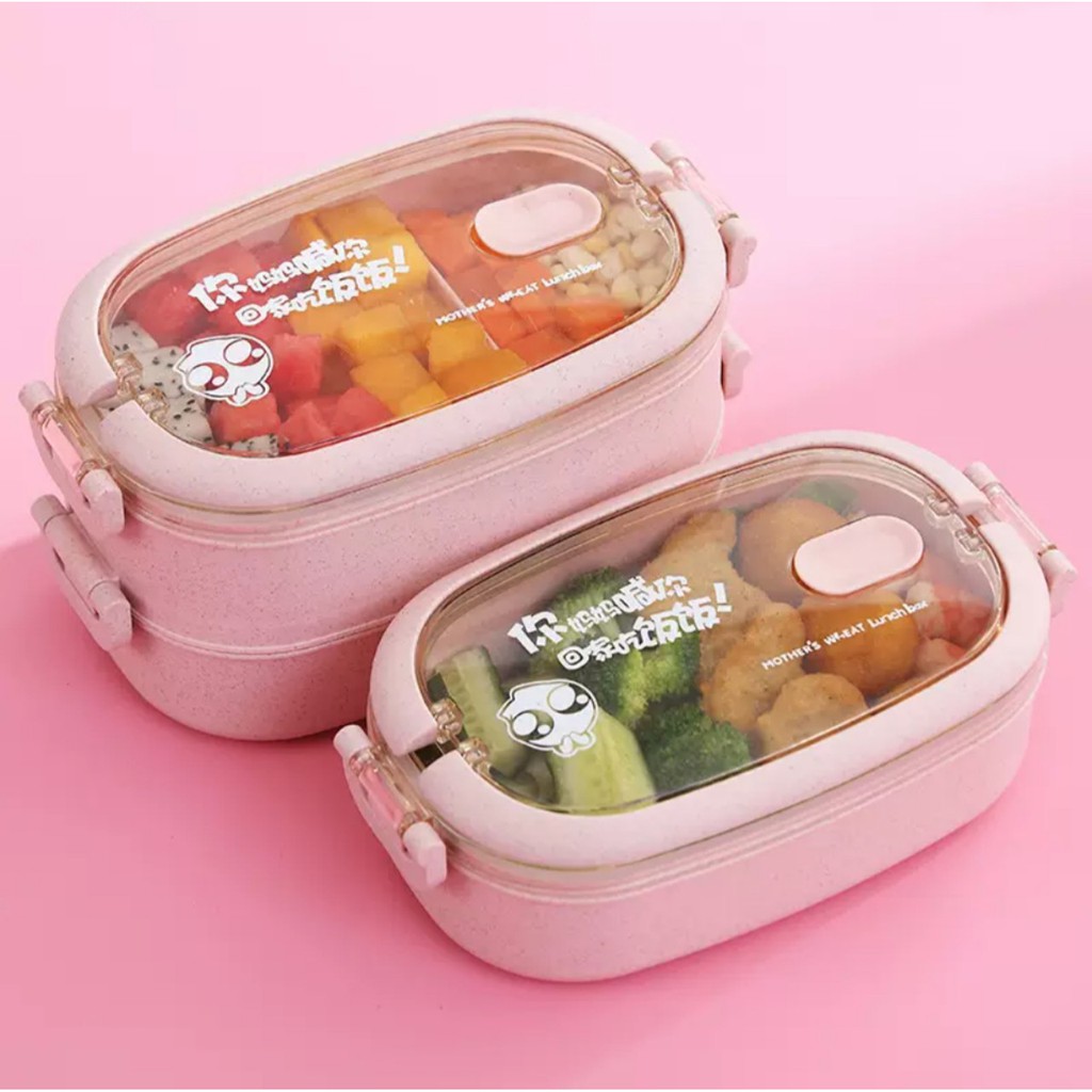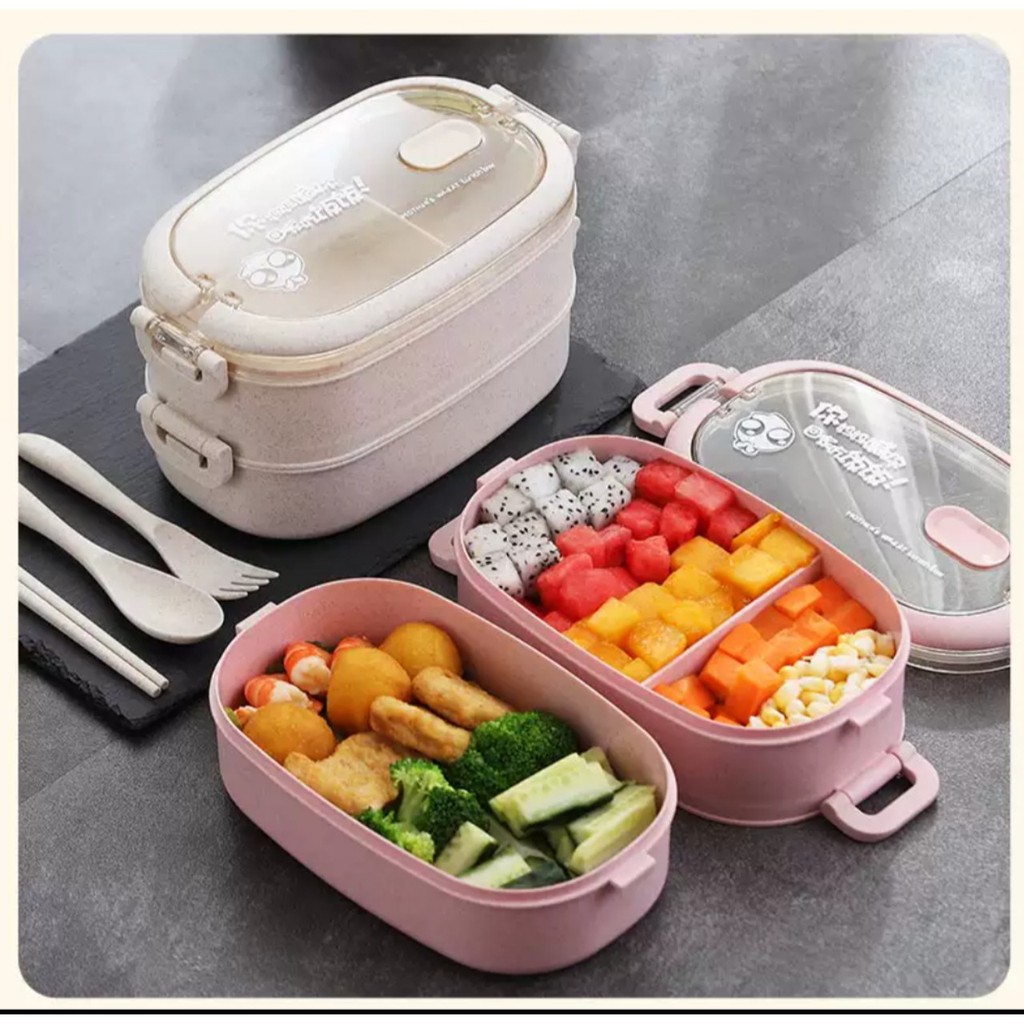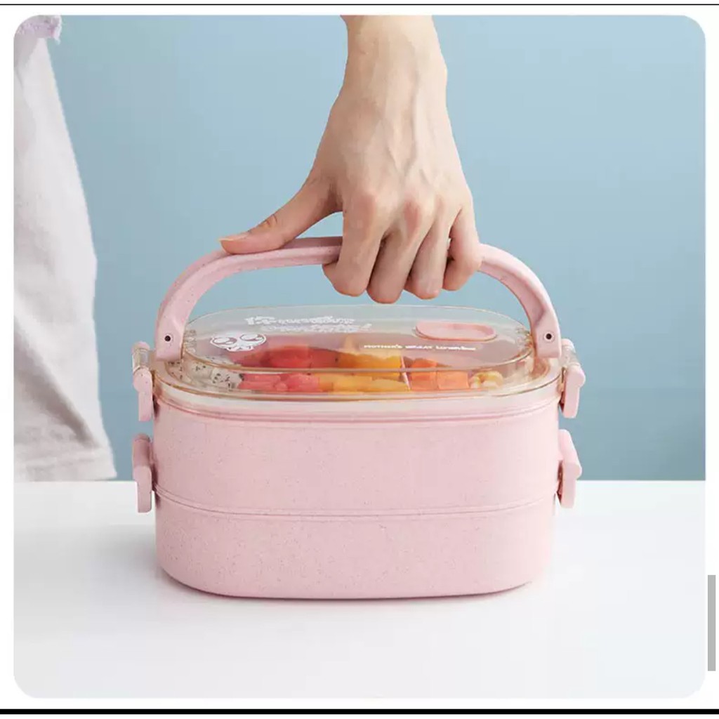 HỘP CƠM LÚA MẠCH CHỮ NHẬT HAI TẦNG KÈM THÌA NĨA ĐŨA