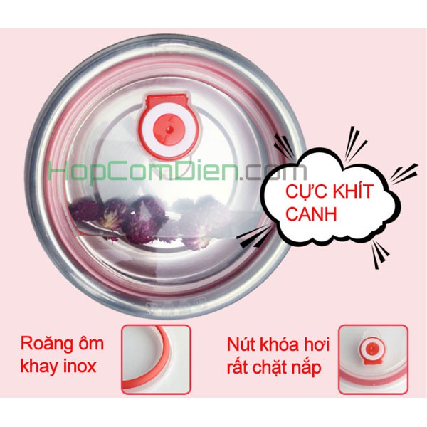 -➡ 3 ngăn inox có in 304 (2 nắp: nắp ngăn canh có roăng cực khít)