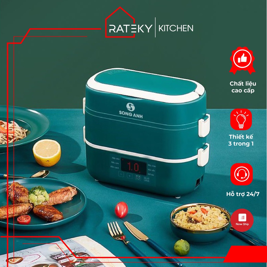 Giới thiệu Hộp Cơm Văn Phòng 2 Tầng Kèm 4 Bát Sứ Cao Cấp, Nồi Cơm Điện Mini SONG ANH