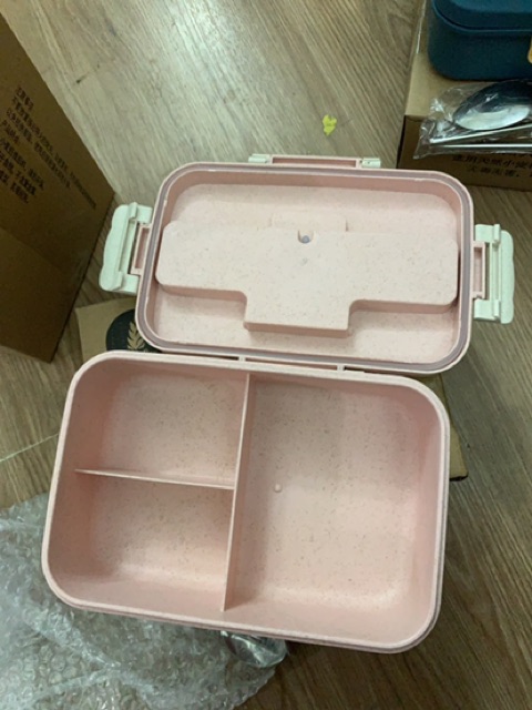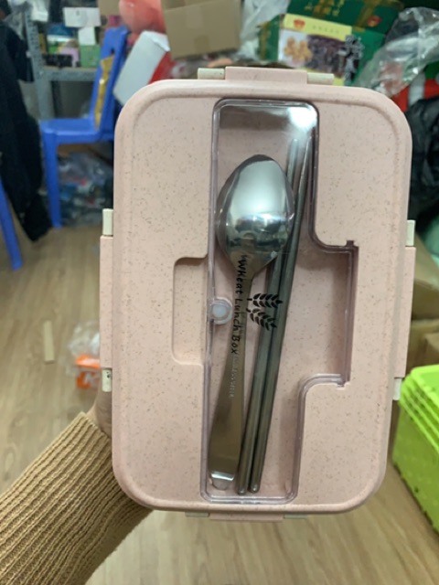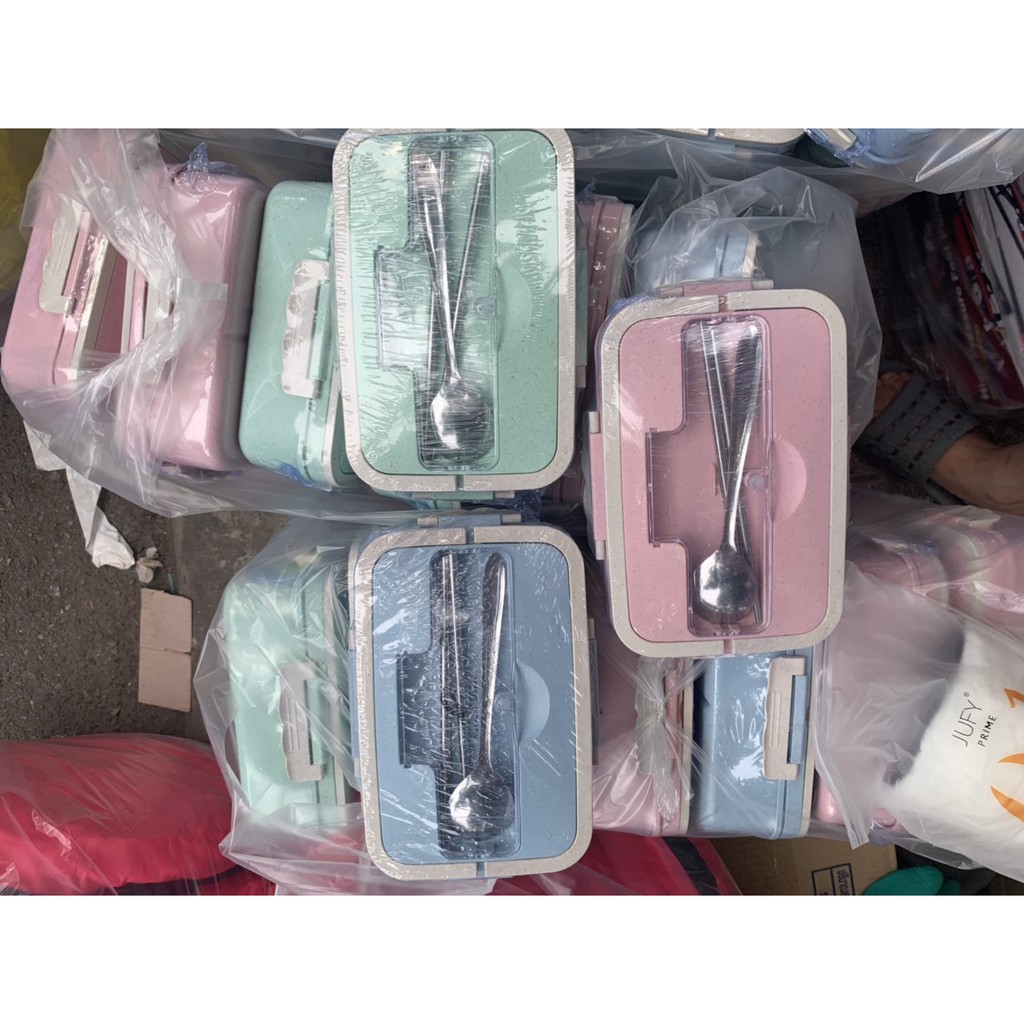 Hộp cơm trưa văn phòng 3 ngăn nhựa lúa mạch kèm đũa thìa inoxlô mới về hộp có viên trắng ảnh 2 khách nhe