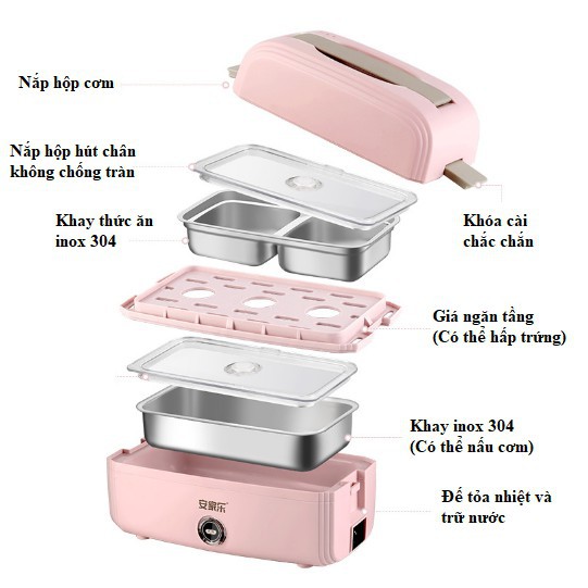 Hộp cơm điện hâm nóng, hộp cơm ăn trưa văn phòng có thể nấu chín thức ăn, nấu cơm như một nồi cơm mini chỉ sau 20 phút.Sản phẩm cao cấp làm từ nhựa PP và inox 304 an toàn cho sức khỏe và thân thiện với người sử dụng. Tiết kiệm thời gian, không cần chuẩn bị nhiều dụng cụ nấu nướng, phù hợp với những người bận rộn, ở 1 mình. Ngoài chức năng hâm nóng thực phẩm còn có thể nấu cơm, nấu xôi, chưng trứng thịt, nấu canh