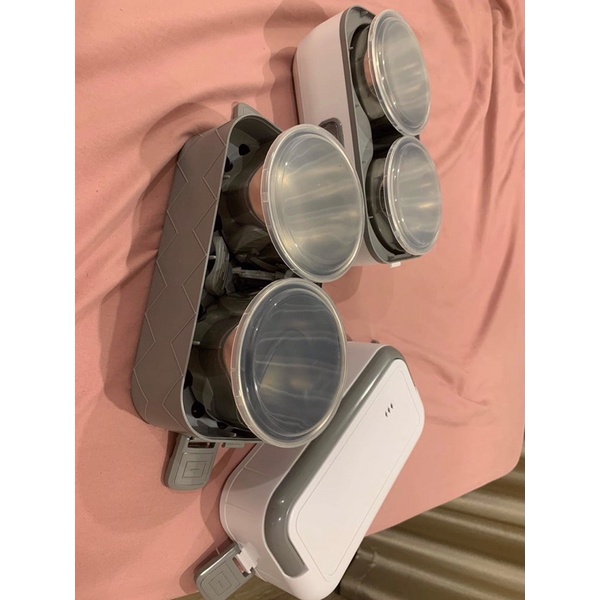 - Chất liệu: hộp nhựa cao cấp + cốc inox 304
