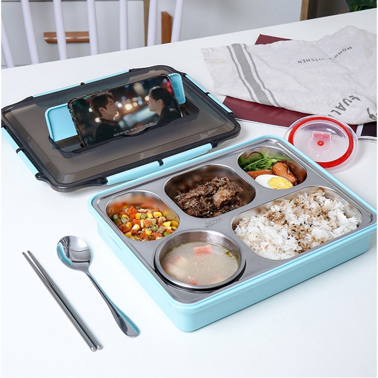 Hộp Cơm Văn Phòng inox giữ nhiệt chống rò rỉ kèm thìa và đũa cao cấp GoodbabyvnTên sản phẩm: Hộp Cơm Văn Phòng 5 Ngăn Có Giá Đỡ Điện Thoại Kèm Đũa Thìa