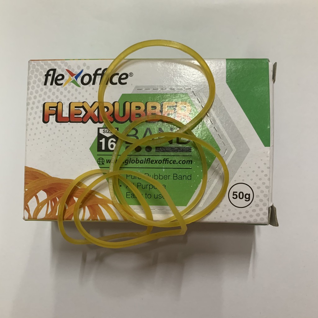 Hộp dây chun Flexoffice 50g FO-RUB02 với kích thước: dài x rộng 60mmx1.5mmDây chun Flexoffice 50g FO-RUB02 được làm từ cao su tinh khiết , đa năng dễ sử dụng.
