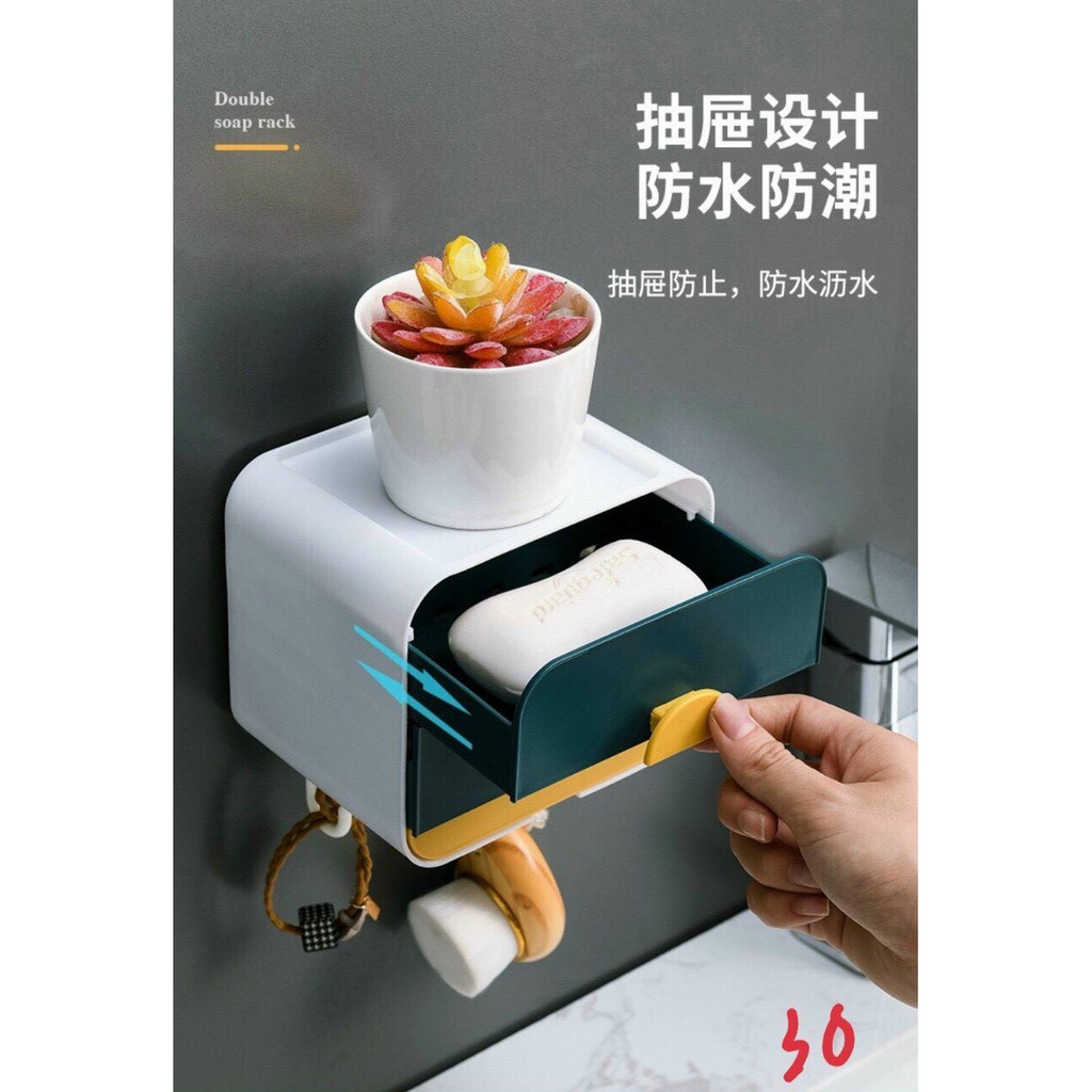Hộp đựng xà phòng 2 tầng có ngăn chứa nước dán tường tiện lợi, bên cạnh đó có thể để các đồ vật dụng sinh hoạt hằng ngày. Bên cạnh đó bạn có thể dán chỗ phòng ngủ hay phòng làm việc. Với các màu sắc đa dạng tạo điểm nhận trong nhà của bạnThông tin sản phẩm Hộp xà phòng được làm chất liệu nhựa PP, các góc cạnh thiết kế bo tròn tạo điểm nhấn và phối màu sắc đa dạng tạo sự mới lạ cho căn phòng của bạn Mỗi ngăn có khe thoát nước nên xà phòng sẽ khô tự nhiên hơn. Phía dưới hộp có khay chứa nước giúp hộp được sạch sẽ hạn chế nước xà phòng chày lên sàn Phía trên hộp có thể đồ đồ hay lọ tinh dầu bắt mắt và tiện lợi Hộp xà phòng có thêm 3 móc treo tiện lợi móc treo bông tắm, cọ chà lưng, dụng cụ sinh hoạt hằng ngày,...... Hộp nhỏ gọn vừa mọi cục xà phòng (xà bông) và đơn giản hơn kệ lắp đặt nhanh chóng với miếng dán siêu bám dính Tên sản phẩm: Hộp đựng xà phòng 2 tầng có ngăn chứa nước Màu sắc: ngẫu nhiên