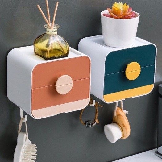 Nhà cửa & Đời sống > Đồ dùng phòng tắm > Kệ đựng xà phòng || Hộp để đồ nhà tắm 2 tầng, hộp đựng giấy vệ sinh, xà bông xà phòng có móc treo tiện lợiCòn hàng