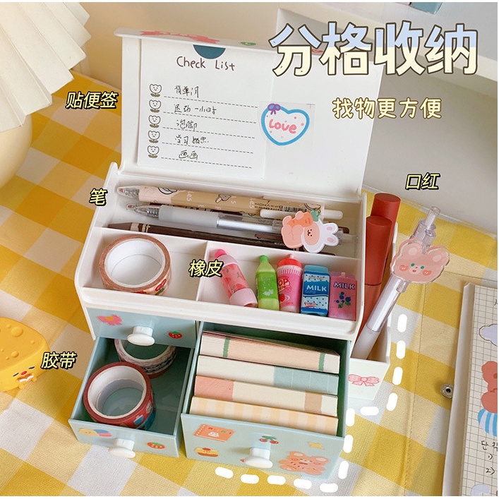 Hộp để đồ tiện dung có thể đựng bút đồ trang điểm , có nắp, có ngăn kéo , bày decor trên bàn học, để đò trang sức