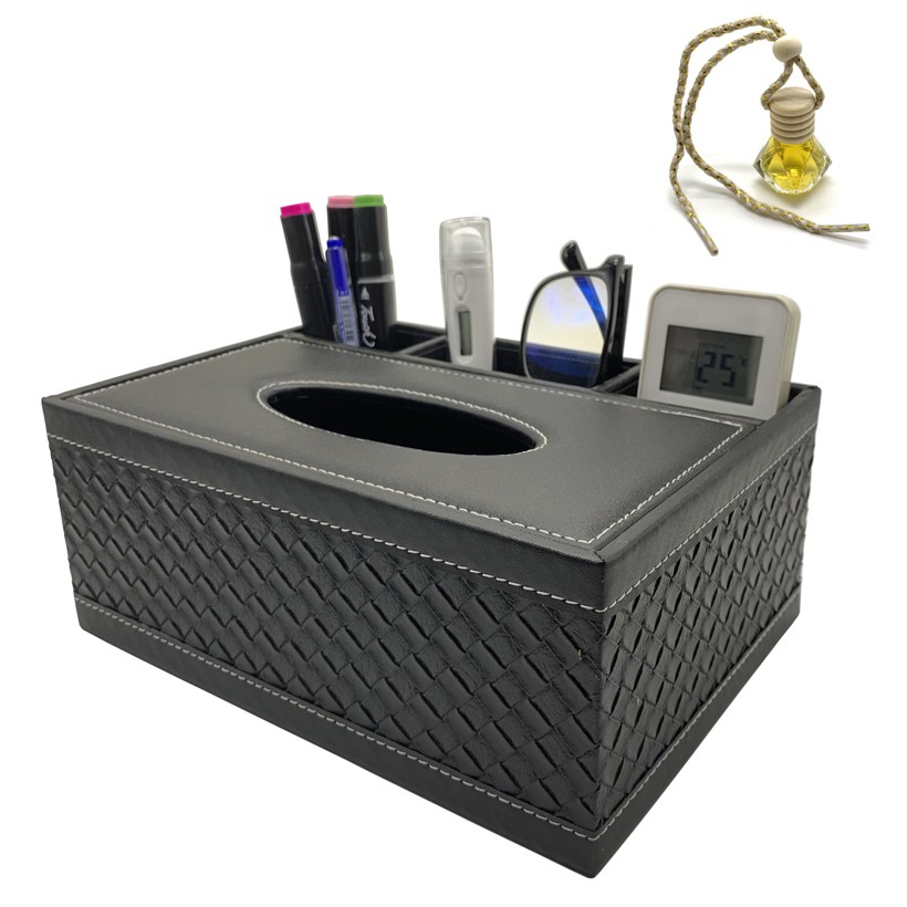 Hộp để giấy ăn kiêm ngăn để đồ đa năng - Tặng 1 lọ tinh dầu treo oto