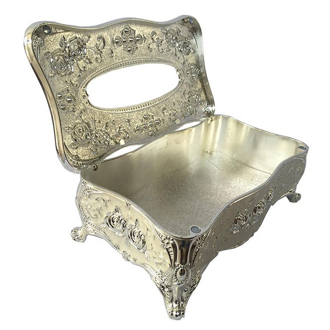 - Hộp đựng giấy ăn được trang trí hoa văn tinh xảo mang tính nghệ thuật cao mang phong cách cổ điển Châu Âu.