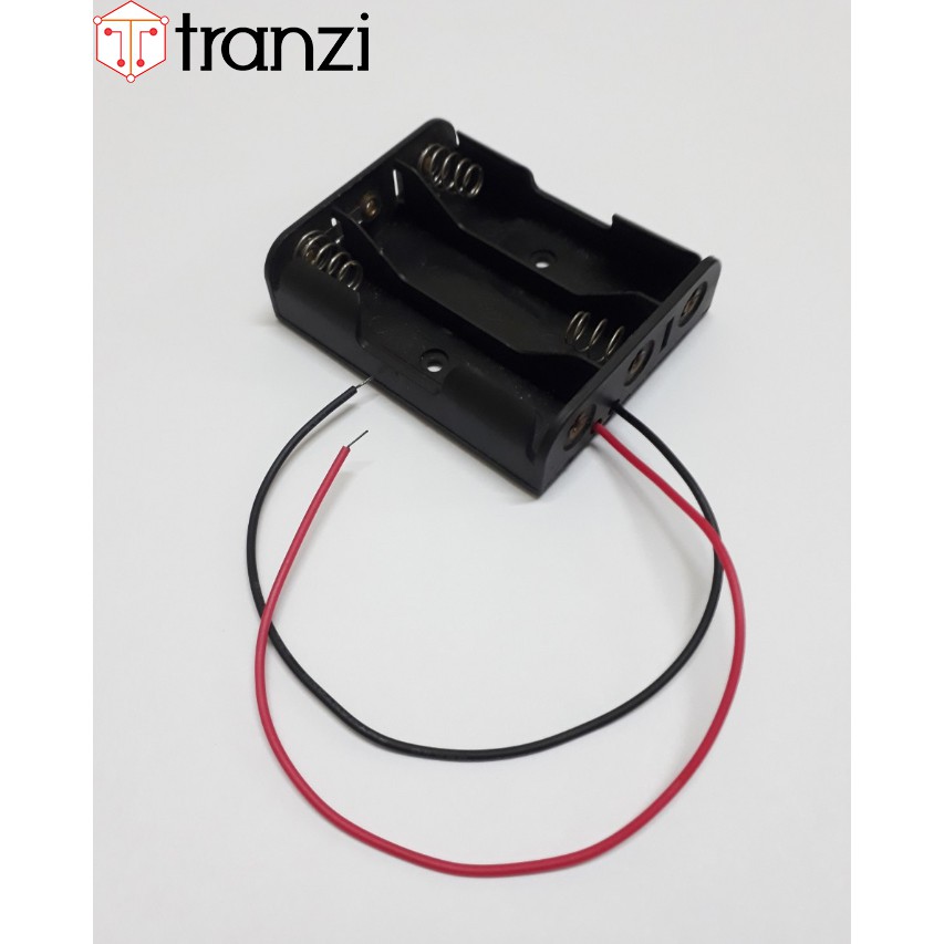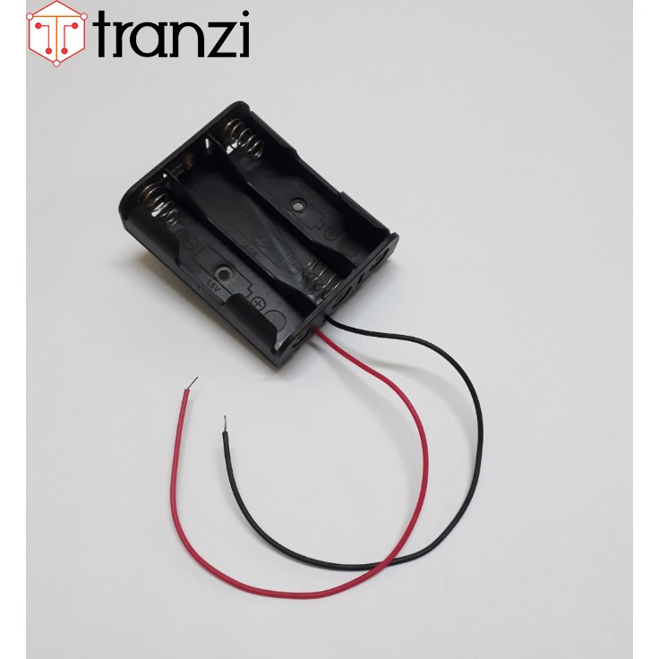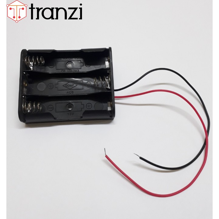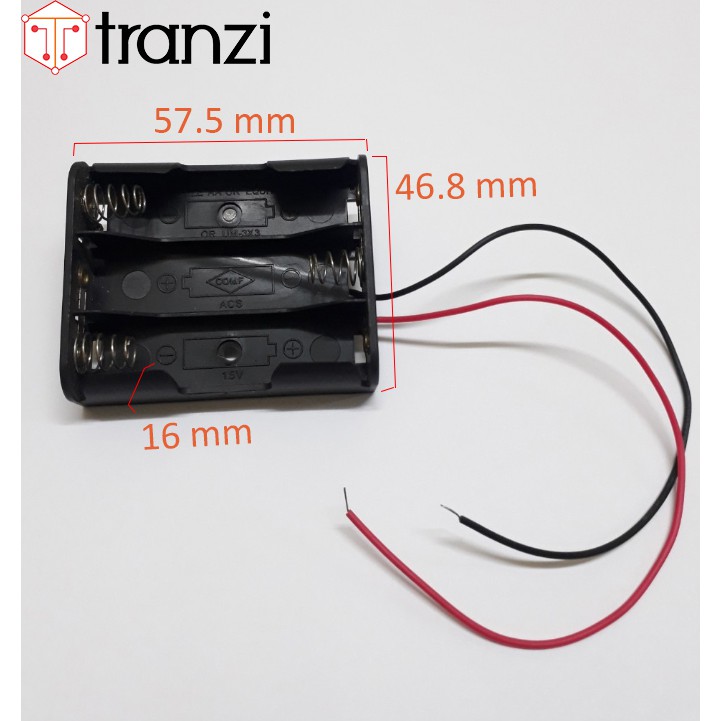 - Bộ phận cấu tạo: Hộp nhựa ABS cách điện + Lẫy kim loại & lò xo dẫn điện ra 3 pin AA 1.5V + 2 dây đỏ & đen, giúp phân biệt cực âm (-), cực dương (+)