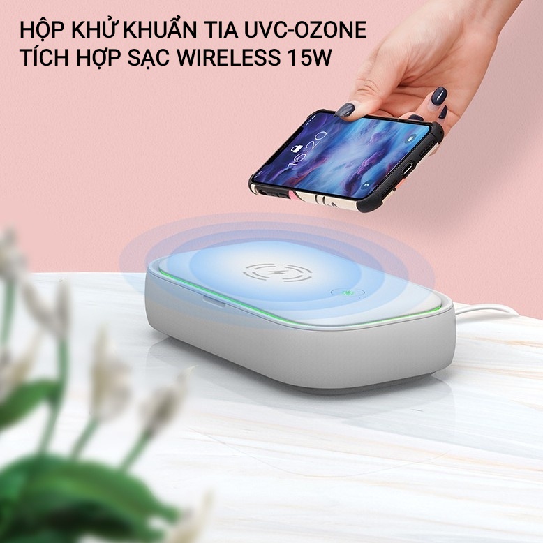 Hộp Diêt Khuẩn Khử Trùng Kép UVC-Ozone tích hợp sạc không dây 15W Đa năng