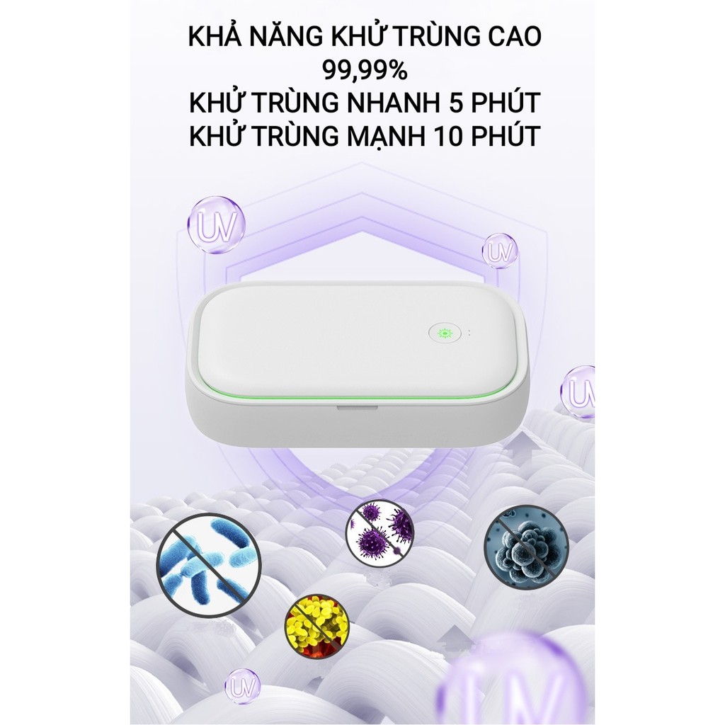 Điện Thoại & Phụ Kiện > Khác || Hộp Diêt Khuẩn Khử Trùng Kép UVC-Ozone tích hợp sạc không dây 15W Đa năngCòn hàng