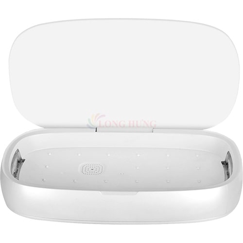 - Sản phẩm có thiết kế hộp nhựa có nắp và hệ thống đèn UV khử khuẩn xung quanh