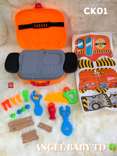 - Bộ đồ chơi sửa chữa có 19 chi tiết: búa, kìm, tua vít, cờ lê, thước góc …