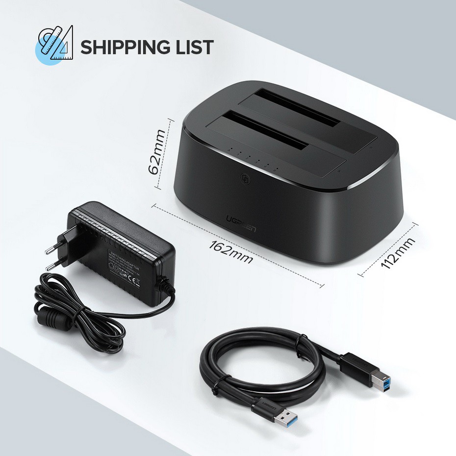 Máy tính & Laptop > Thiết Bị Lưu Trữ > Thiết Bị Đựng Ổ Cứng || Hộp Đọc ổ cứng HDD/SSD 2 Cổng SATA 2.5/3.5" 16TB,USB 3.0 Tốc độ UASP 6Gbps Ugreen 50742 CM198Còn hàng