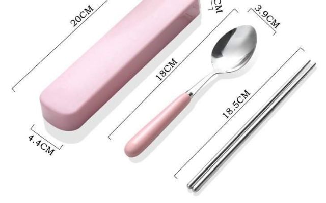 Bộ Hộp - muỗng - đũa cá nhân vệ sinh an toàn tiện lợi-Thành phần: Thép không gỉ, Polyester