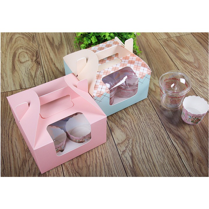Giới thiệu HỘP ĐỰNG 4 BÁNH CUPCAKE KẺ CARO