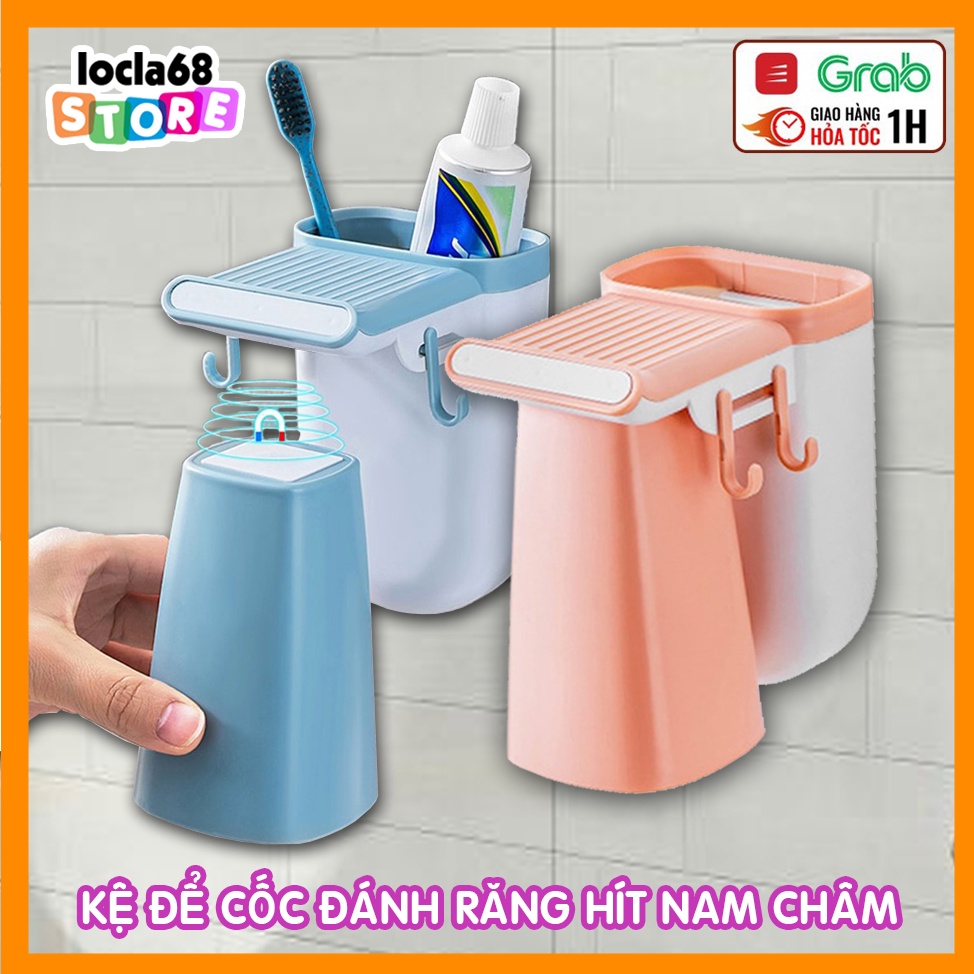 Hộp đựng bàn chải đánh răng kệ đựng bàn chải giá để kem đánh răng kèm cốc gắn nam châm dán tường thông minh
