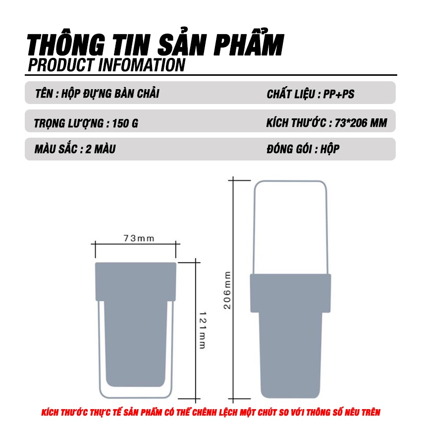 - Đặc Điểm Nổi Bật : Hôp đựng bàn chải kem đánh răng tiện ích cho những chuyến đi Đựng được 3-4 bàn chải size bình thường và kem đánh răng Phù hợp cho chuyến đi gia đình 3-4 thành viên Thiết kế nắp đậy kín đáo, nhỏ gọn Bền đẹp, màu sắc tươi sáng, sạch sẽ