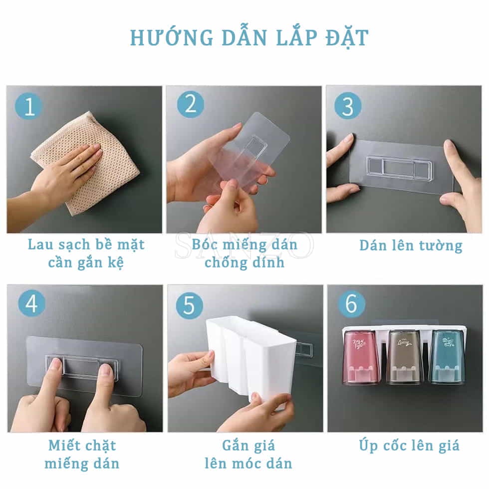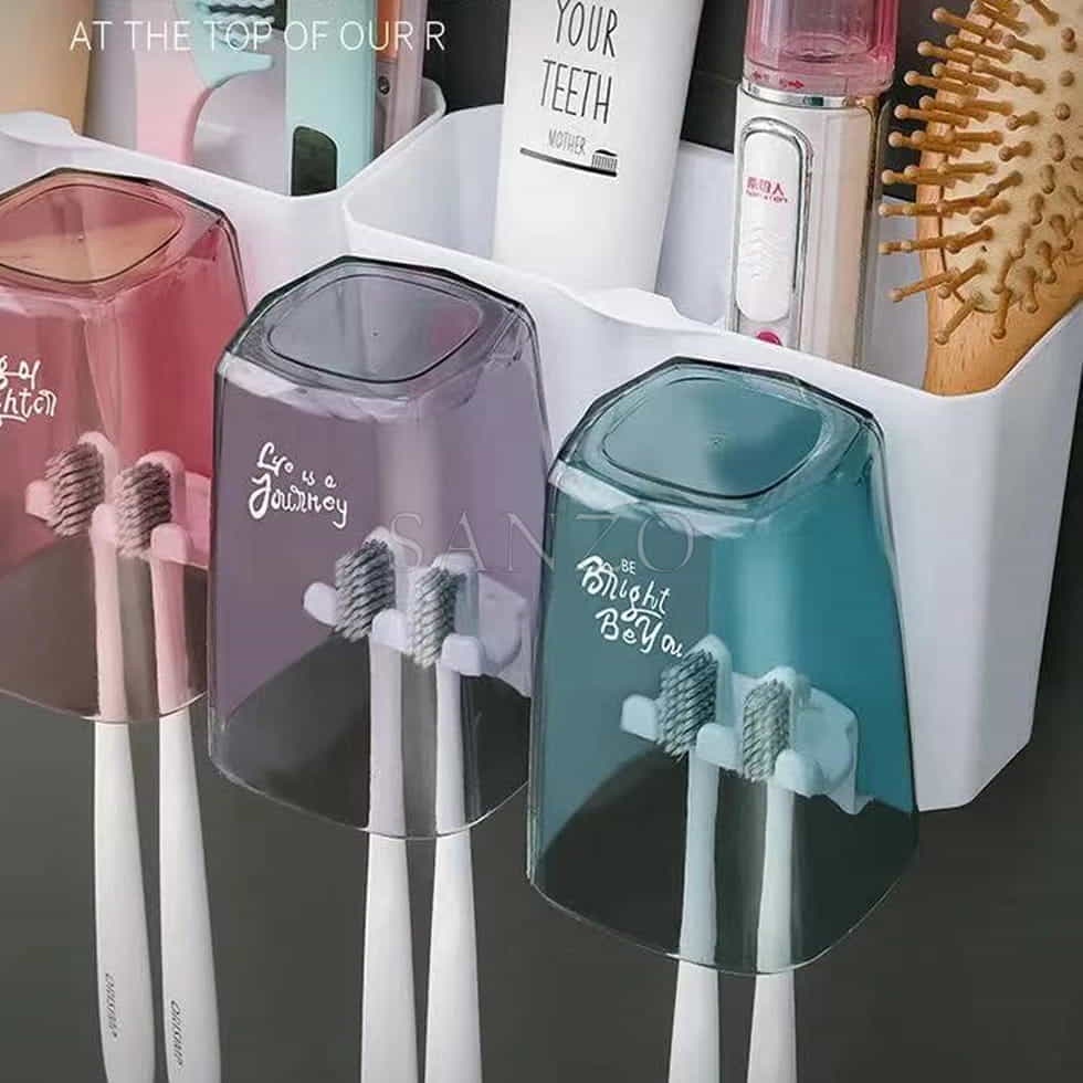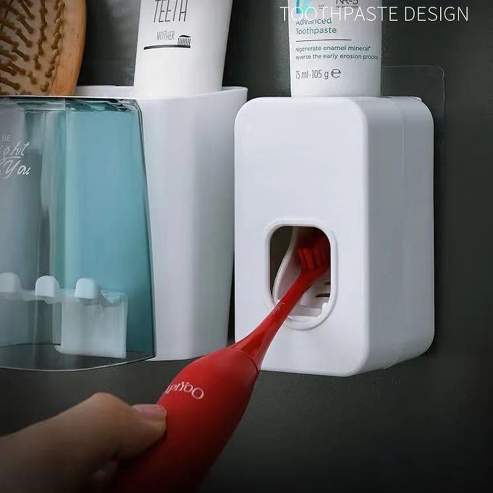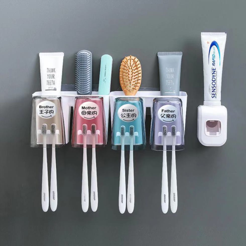 Giá đựng bàn chải, cốc đánh răng, tự lấy kem đánh răng dán tường- Chất liệu: PP + PC