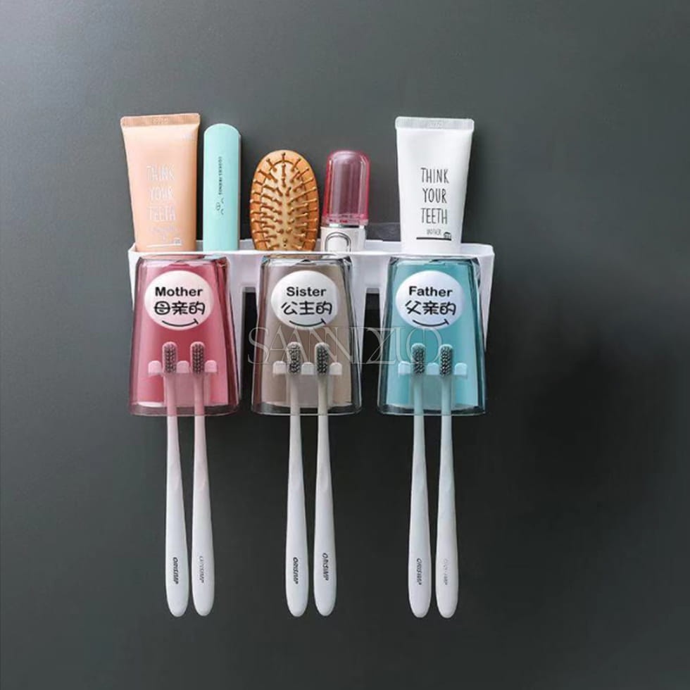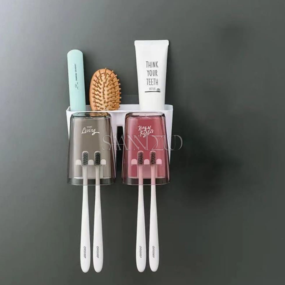 Giá đựng bàn chải, cốc đánh răng, tự lấy kem đánh răng dán tường- Chất liệu: PP + PC
