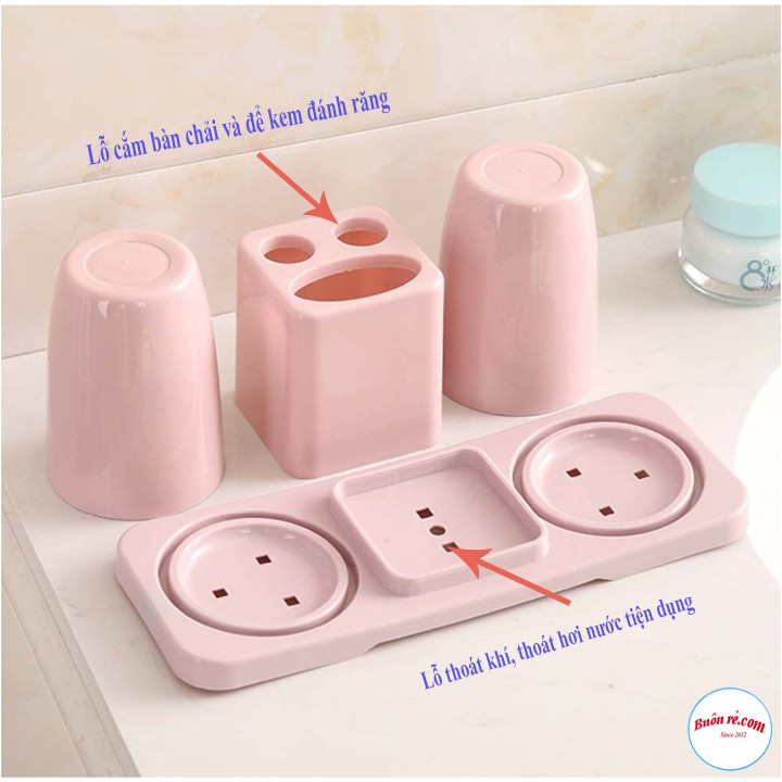 – Thiết kế đa năng gồm nhiều lỗ cắm bàn chải và để kem đánh răng, 2 cốc đánh răng không quai.