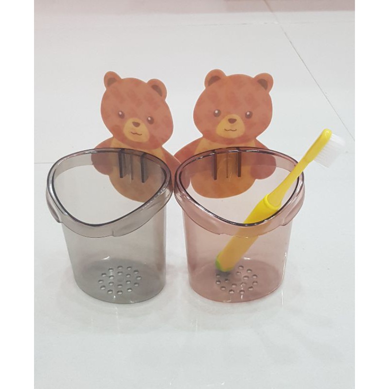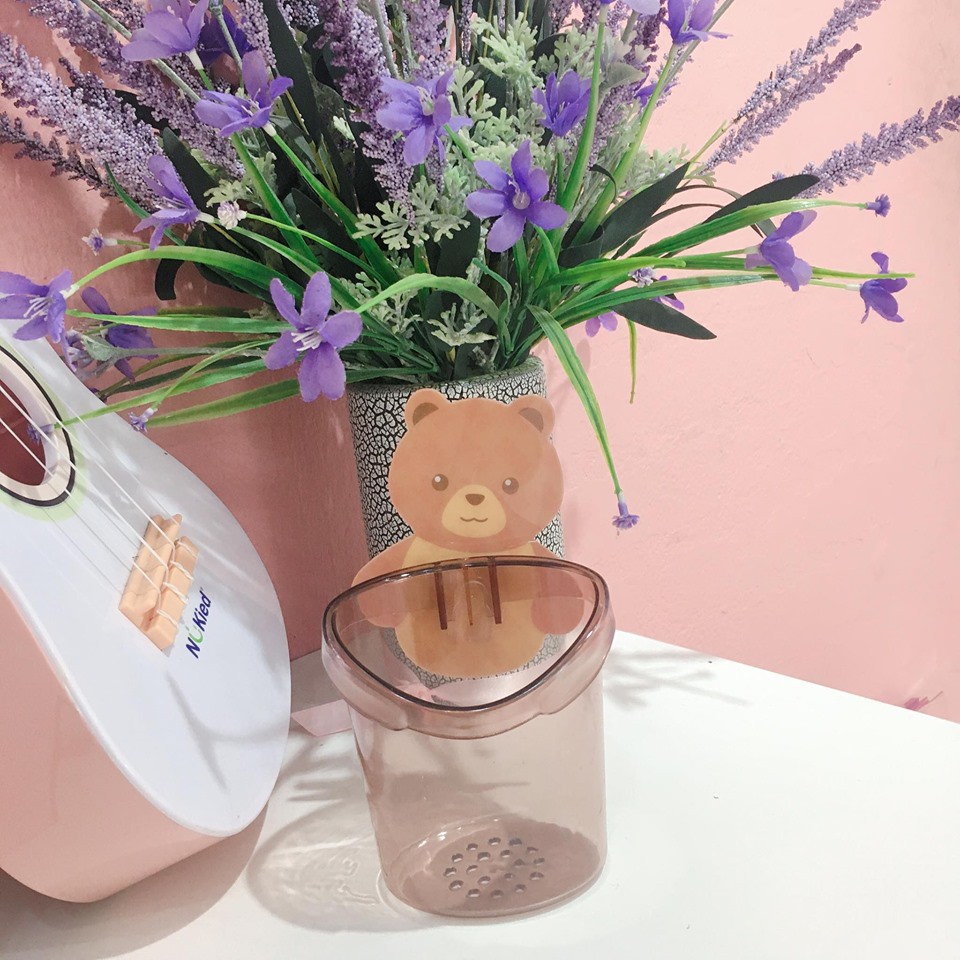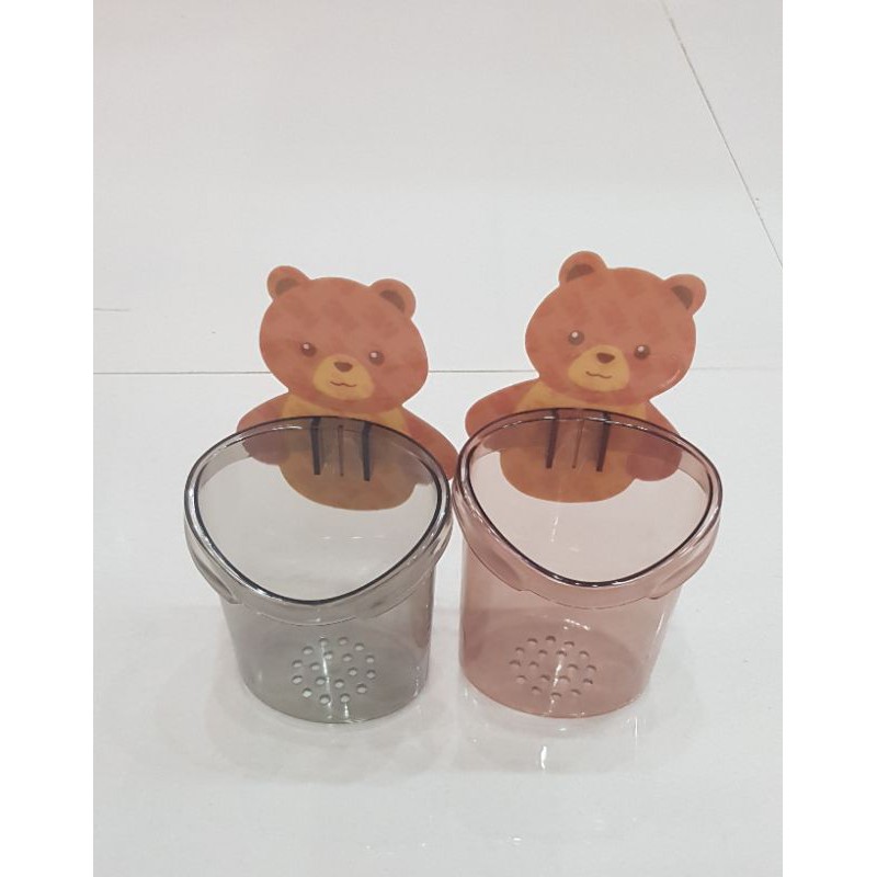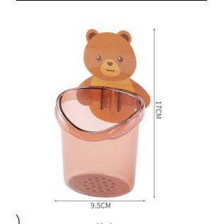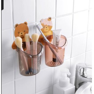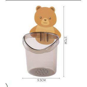 Hộp Đựng Bàn Chải và Kem Đánh Răng Kèm Móc Dán Tường Hình Gấu 2 Màu Nâu, Xám Chất liệu Nhựa Cao cấp