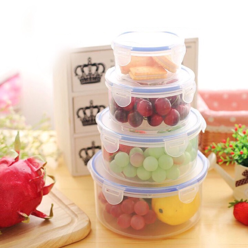 Hộp đựng bảo quản thực phẩm 500ml 2512 Song Long Plastic Four Lock nhựa tròn cao cấp DrbStore