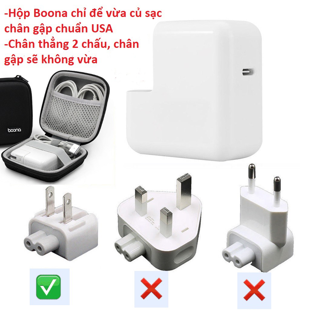 ❗️❗️❗️ LƯU Ý : Hộp Đựng Cáp Sạc Boona➖Chỉ đựng vừa Sạc Macbook có đầu sạc gập gọn lại ( chuẩn USA ) sẽ vừa với mọi loại công suất sạc của các đời Macbook