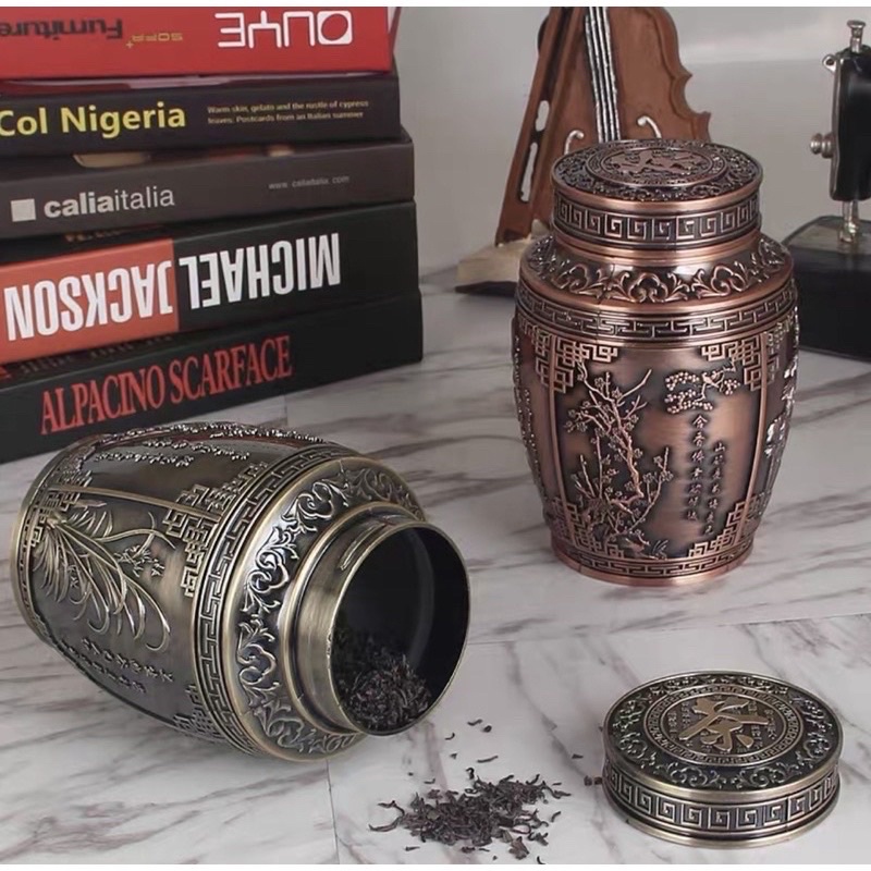 Nhà cửa & Đời sống > Dụng cụ nhà bếp > Dụng cụ pha trà, cà phê || hộp đựng chè hoàng gia,lọ đựng trà đồng hình bầu cao cấpCòn hàng