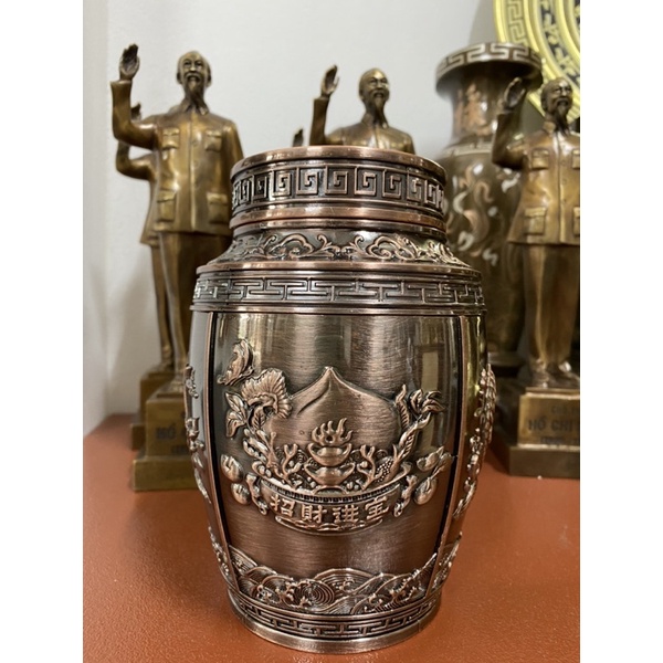 Chất liệu vỏ đồng lõi được đêm lớp nhựa ABS giúp bảo quản tốt hương vị chè và tránh ẩm mốcKích thước 18cm x 12.5cm