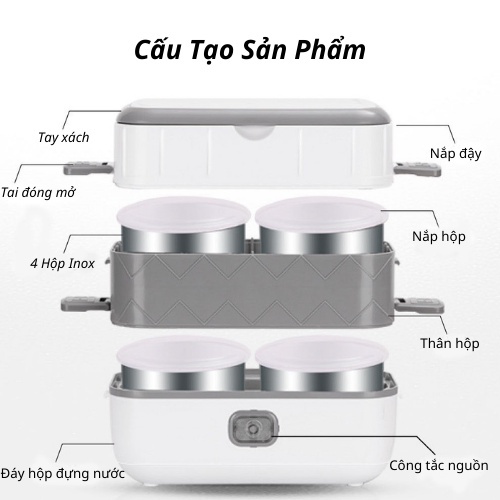 Giới thiệu Hộp Đựng Cơm Cắm Điện 2 Tầng 4 Khay Đựng Đồ Ăn, Có Thế Nấu và Làm Nóng đồ ăn Nhanh chóng, Tiện lợi.