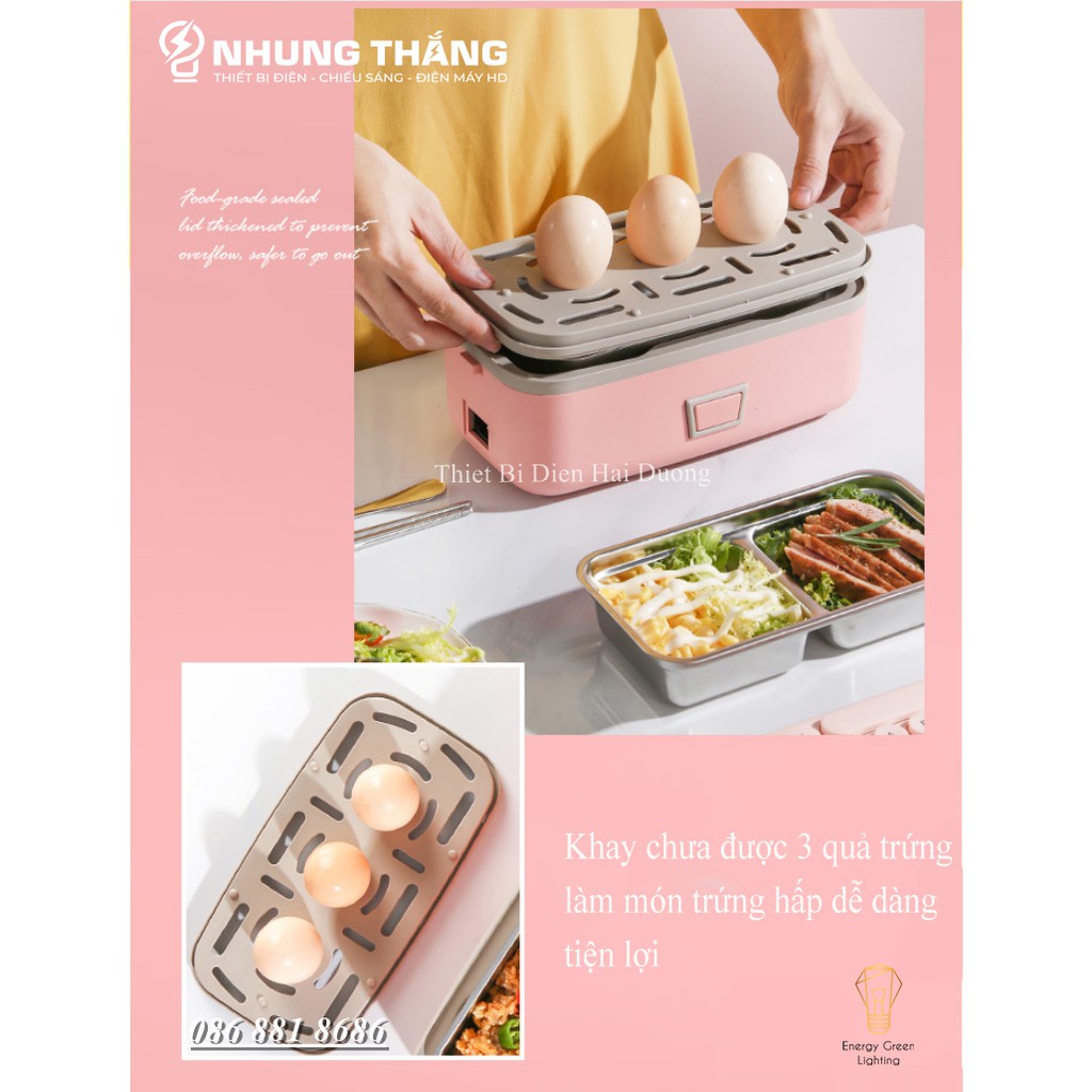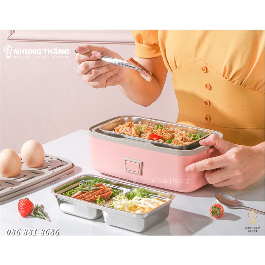🍀Hộp đựng cơm cắm điện 2 tầng QH-300A lõi inox 304 cao cấp, có thể nấu trực tiếp cơm và thức ăn cho bữa trưa văn phòng tiện lợi, an toàn.