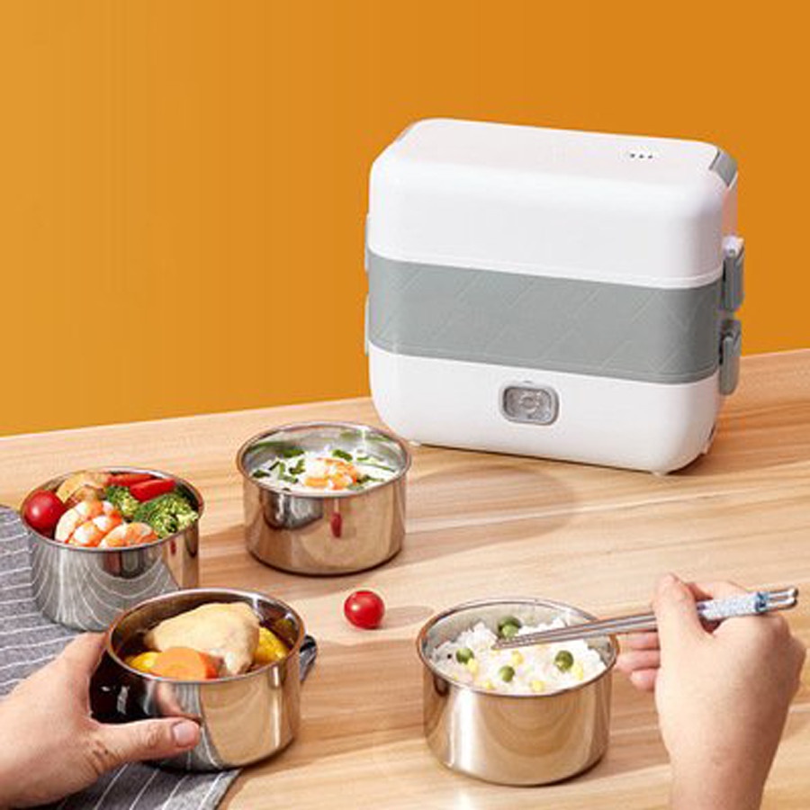 Hộp cơm điện - Hộp tự động hâm nóng cơm tiện lợi 2 tầng, khay inox không rỉ 400W - 2 Lít