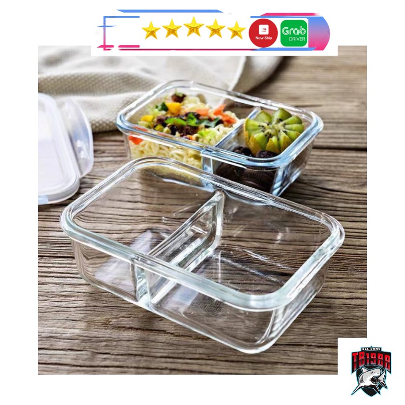 Hộp đựng cơm thủy tinh giữ nhiệt văn phòng 2 ngăn cao cấp an toàn 1000ml dùng được cho lò vi sóng