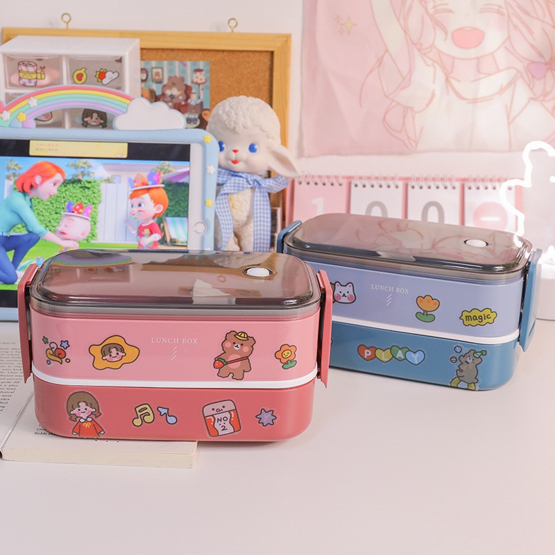 Hộp Đựng Cơm Văn Phòng, Cặp Lồng Đựng Cơm Văn Phòng 2 Tầng Hàn Quốc Tặng Kèm Sticker Dán, Dùng Được Cho Lò Vi Sóng==================================