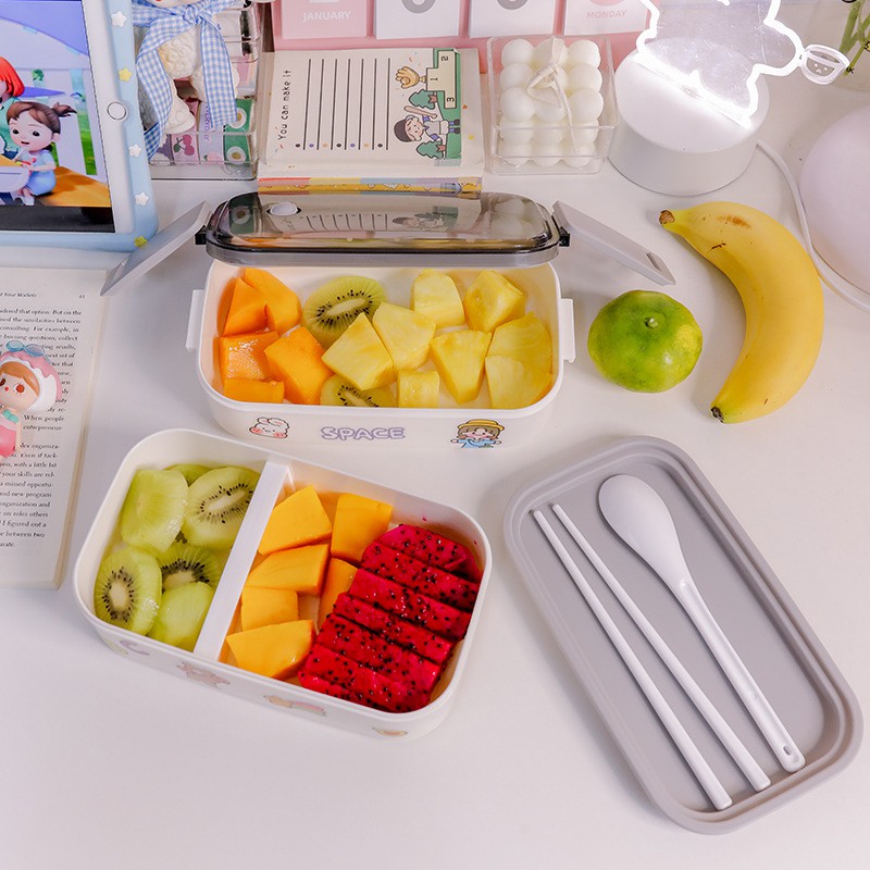 Hộp Đựng Cơm Văn Phòng, 2 Tầng Hàn Quốc Tặng Kèm Sticker Dán, Dùng Được Cho Lò Vi Sóng, giảm sâu