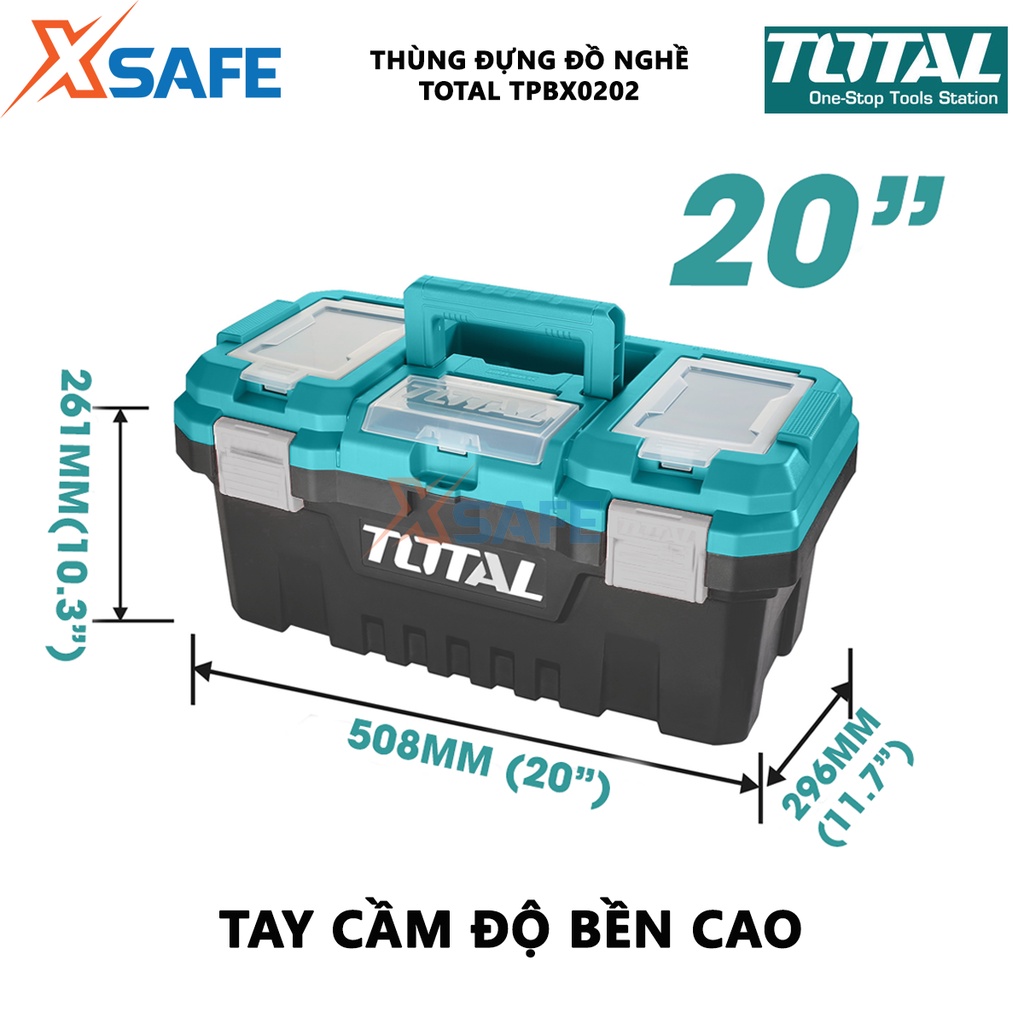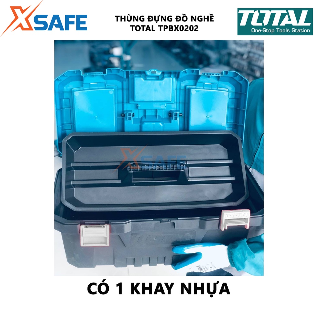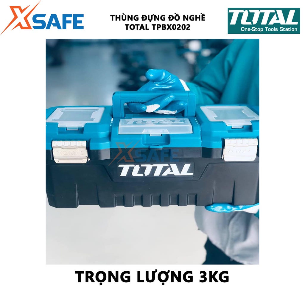 Giới thiệu Hộp dụng cụ khóa kim loại TOTAL TPBX0202 Thùng đựng đồ nghề tải tối đa 20KG, khóa kim loại, tay cầm độ bền cao - [XSAFE]
