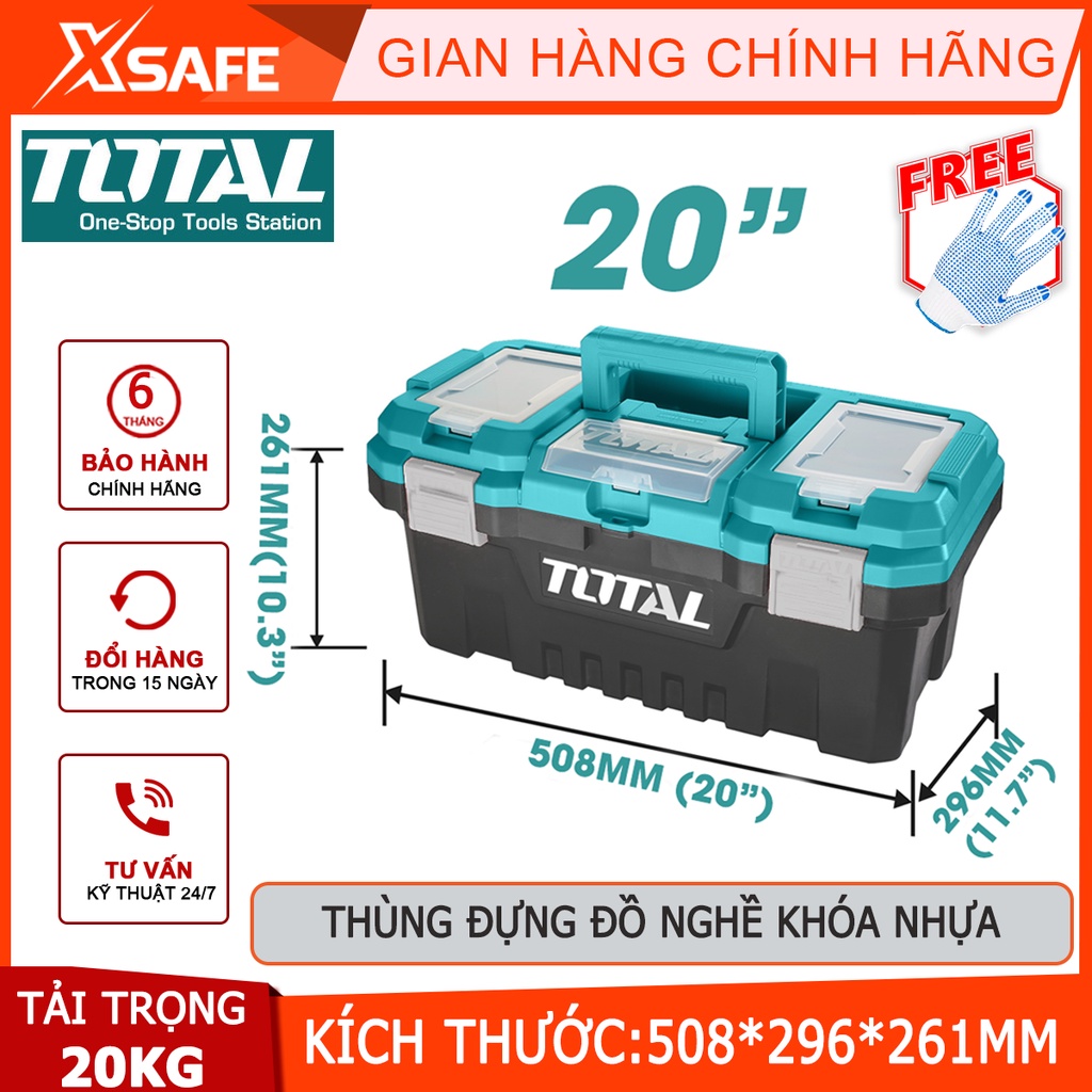 Hộp dụng cụ khóa kim loại TOTAL TPBX0202 Thùng đựng đồ nghề tải tối đa 20KG, khóa kim loại, tay cầm độ bền cao - [XSAFE]