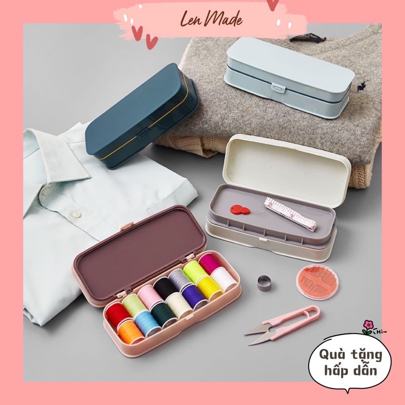 Hộp dụng cụ may vá gia đình xinh xắn nữ công thêu thùa làm handmade tự may kim chỉ phụ kiện gia dụng Len Made